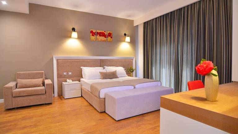 Das Sandy Beach Resort liegt in der Region Tirana und besticht durch seine erstklassige Lage direkt am Strand von Golem. Von hier aus können Sie das klare Wasser und den feinen Sandstrand in nur wenigen Schritten erreichen. Die Stadt Durrës ist nur 17 km entfernt und die Hauptstadt Tirana erreichen Sie nach 40 km. Der Flughafen Tirana ist ebenfalls gut erreichbar und liegt nur 44 km entfernt.