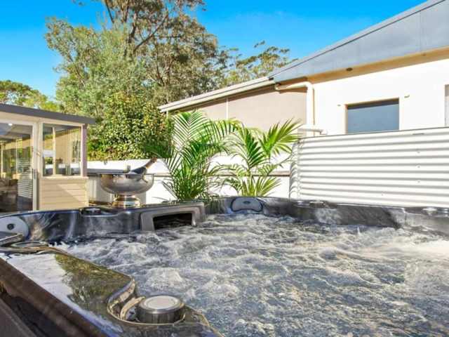 Das Sandy Shores in Callala Bay, New South Wales, ist eine perfekte Unterkunft für einen entspannten Urlaub. Mit einem Balkon und nur 1,6 km vom Strand Callala entfernt, bietet das Ferienhaus 4 Schlafzimmer, eine gut ausgestattete Küche und 2 Badezimmer mit Whirlpool. Kostenloses WLAN und Privatparkplätze stehen Ihnen ebenfalls zur Verfügung.