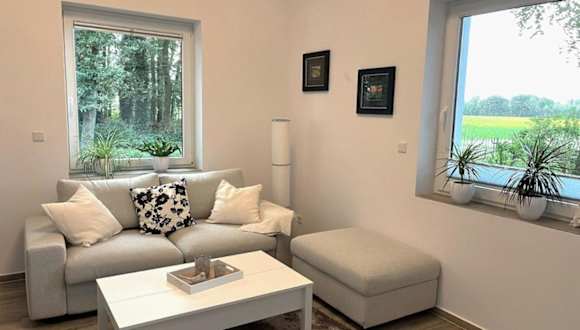 Die sanierte ruhige Wohnung in der Natur mit Küche bietet Übernachtungsmöglichkeiten in einer ruhigen Lage. Zur Ausstattung gehören ein Balkon, ein Garten sowie ein kostenloser Privatparkplatz. Diese Ferienwohnung ist von einem privaten Gastgeber geführt und bietet eine Nichtraucherunterkunft, in der keine Junggesellen-/Junggesellinnenabschiede oder ähnliche Feiern erlaubt sind.