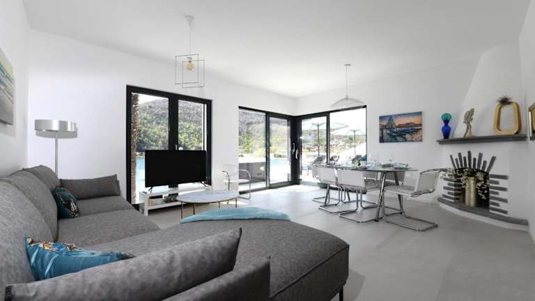 Die Villa ist mit einer Küche ausgestattet, die mit einem Kühlschrank und einem Geschirrspüler versehen ist. Es stehen 2 Badezimmer mit Dusche, Haartrockner und Waschmaschine zur Verfügung. Zur Unterhaltung gibt es einen TV. Zudem bietet die Unterkunft einen Whirlpool.