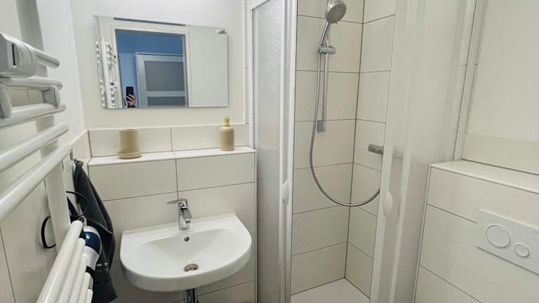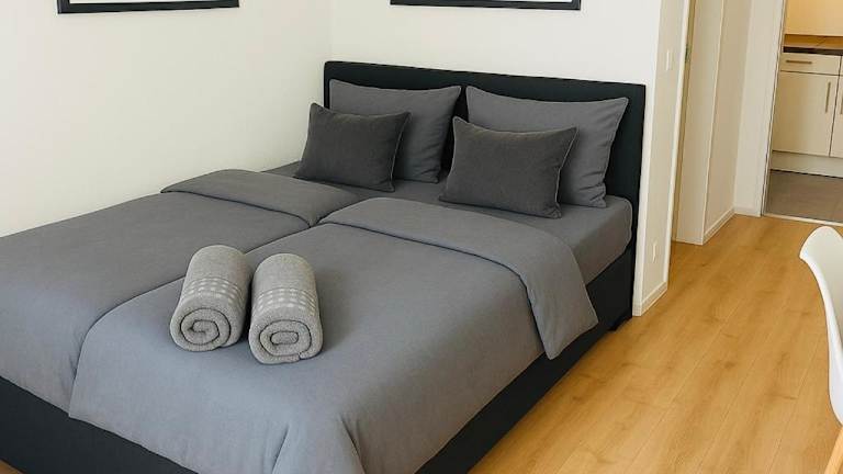 Die Ferienwohnung ist ausgestattet mit 1 Schlafzimmer, einer voll ausgestatteten Küche, die ein Ofen und eine Mikrowelle beinhaltet, sowie 1 Badezimmer mit Dusche und Haartrockner. Handtücher und Bettwäsche werden zur Verfügung gestellt.