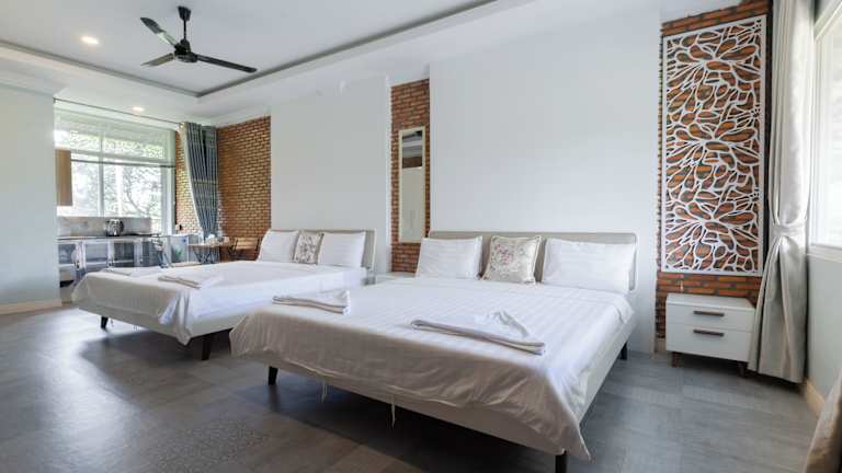 Das Hotel Sanssouci Kep in Kep ist der ideale Ort für einen entspannten Urlaub. Mit einem Außenpool, einem schönen Garten und kostenfreien Privatparkplätzen bietet das Hotel seinen Gästen eine komfortable Unterkunft. Familienzimmer und ein Kinderspielplatz sorgen dafür, dass auch Familien hier eine tolle Zeit verbringen können. Genießen Sie das kostenlose WLAN und ein leckeres asiatisches Frühstück, das täglich im Resort serviert wird. Entdecken Sie die Sehenswürdigkeiten in der Umgebung, wie die Pagode Wat Samathi und den Bootsanleger Kep. Der internationale Flughafen Sihanouk ist nur 107 km entfernt.