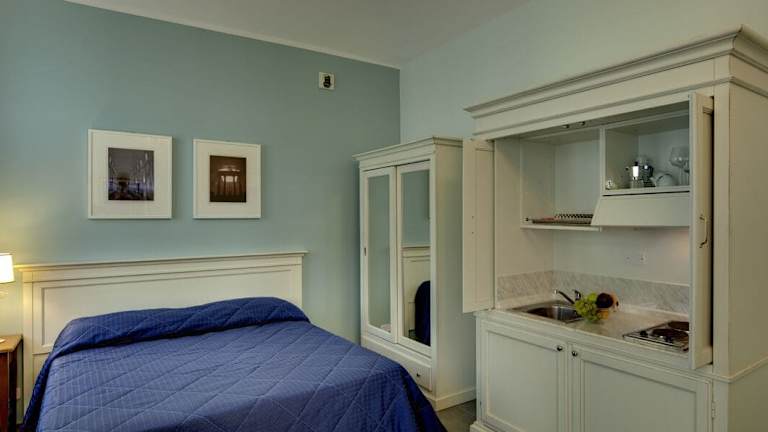 Die Apartments sind mit Klimaanlage, Heizung, einem Doppelbett und einem Sofabett ausgestattet. Sie verfügen über eine Kochnische zur Zubereitung kleiner Mahlzeiten sowie über Telefon, TV-Gerät und kostenloses WLAN. Es sind sowohl Familienzimmer als auch Nichtraucherzimmer verfügbar.