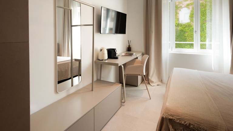Die Zimmer sind ausgestattet mit Klimaanlage, Schreibtisch, Flachbild-TV, eigenem Badezimmer, Bettwäsche, Handtüchern und Balkon mit Stadtblick. Einige Zimmer sind außerdem mit einer Küche ausgestattet, die einen Geschirrspüler und eine Herdplatte umfasst. Alle Zimmer verfügen über einen Kühlschrank und einen Wasserkocher.