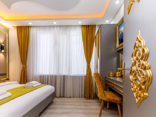 Erleben Sie einen angenehmen Aufenthalt im Santa Rio Taxim Hotel in Istanbul. Die zentrale Lage, der Komfort der Unterkünfte und die Vielzahl an Annehmlichkeiten machen dieses Hotel zu einer idealen Wahl für Ihren Aufenthalt. Genießen Sie den kostenfreien WLAN-Zugang, die Gemeinschaftslounge und die Wellnessmöglichkeiten wie Whirlpool und Sauna. Starten Sie Ihren Tag mit einem leckeren Halal-Frühstück und profitieren Sie von den praktischen Serviceleistungen wie Bügelservice und Geschäftseinrichtungen. Die Nähe zu beliebten Sehenswürdigkeiten und der Flughafentransfer runden das Angebot des Hotels ab.