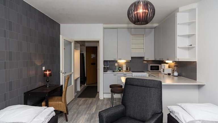 Das Santa's Luxury City Apartment verfügt über eine Sauna, in der sich die Gäste entspannen können. In der Nähe der Unterkunft gibt es auch verschiedene Sehenswürdigkeiten wie den Lordi Square, das Bio Rex Kino und die Lumberjack's Candle Bridge, die alle einen Besuch wert sind. Die Gäste haben auch die Möglichkeit, die umliegende Natur zu erkunden und Aktivitäten wie Wanderungen oder Radtouren zu unternehmen.