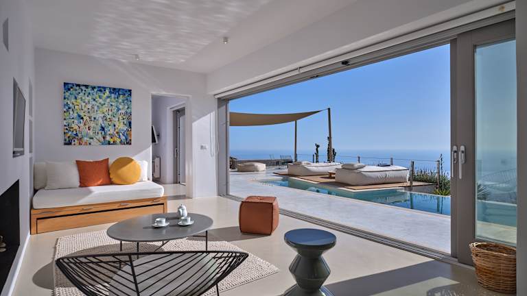 Die Suiten im Santorini Heights sind luxuriös eingerichtet und bieten Ihnen alle Annehmlichkeiten, die Sie für einen erholsamen Aufenthalt benötigen. Jede Suite verfügt über einen beheizten Pool, in den Superior Suiten gibt es sogar einen eigenen Infinity-Pool für zusätzlichen Luxus. Die Zimmer sind mit einem Ess- und einem Sitzbereich mit einem Smart-TV ausgestattet und verfügen über eine komplett ausgestattete Küche. Einige Suiten bieten auch einen Balkon, auf dem Sie Yoga machen oder den Sonnenuntergang bei einem Cocktail genießen können.