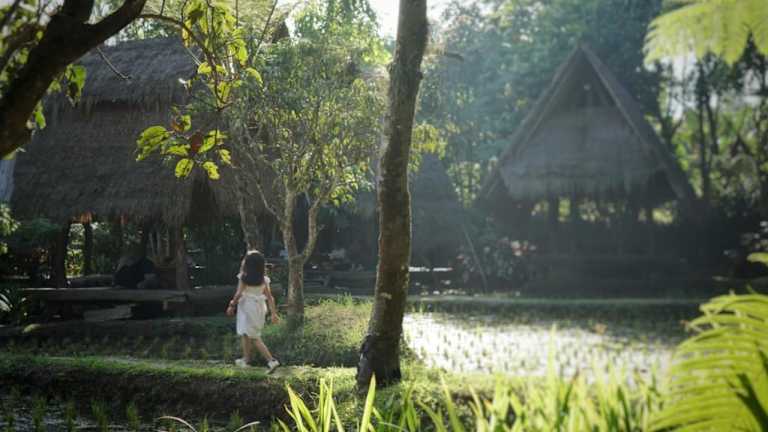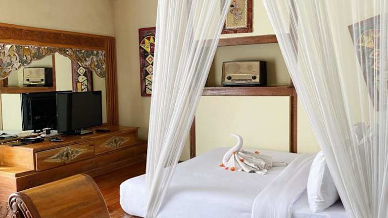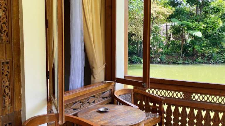 Die Zimmer im Sapulidi Cafe, Gallery & Resort sind geräumig und bieten einen eigenen Balkon mit Blick auf den Fluss. Die traditionelle indonesische Architektur und die Kunstwerke aus der Region verleihen den Zimmern eine einzigartige Atmosphäre. Die Betten mit Baldachin, Holzböden und das eigene Badezimmer mit heißem und kaltem Wasser sorgen für Komfort und Gemütlichkeit.
