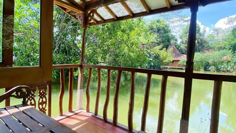 Das Sapulidi Cafe, Gallery & Resort in Lembang ist eine authentische Unterkunft, die mit ihrer traditionellen indonesischen Architektur und einer grünen Umgebung am See beeindruckt. Genießen Sie die klare und kühle Luft sowie die Annehmlichkeiten wie das tägliche Frühstück, kostenlosem WLAN und den geräumigen Zimmern mit Balkon und Flussblick. Entdecken Sie die Freizeitmöglichkeiten wie eine Bootsfahrt auf dem See und den Besuch des Geschenkeladens. Das Restaurant Sapulidi bietet eine traditionelle Atmosphäre und köstliche indonesische und sudanesische Spezialitäten.
