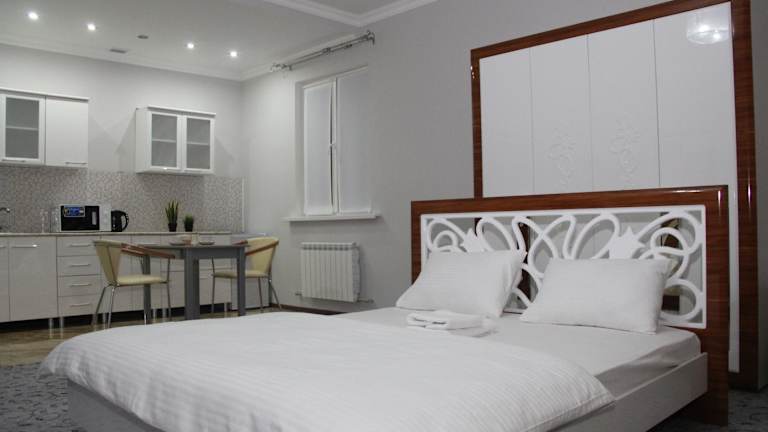 Das Sarai-Batu Guest House in Atyrau bietet seinen Gästen eine zentrale Lage, kostenfreies WLAN und eine gemütliche Atmosphäre. Die Apartments sind gut ausgestattet und einige verfügen über Klimaanlage und eine Küchenzeile. Genießen Sie Ihr Frühstück auf dem Zimmer oder nutzen Sie die Gemeinschaftsküche. Die Nähe zum Geschäftszentrum Atyrau Plaza und dem Fluss Ural macht dieses Guest House zu einem idealen Ausgangspunkt, um die Stadt zu erkunden.
