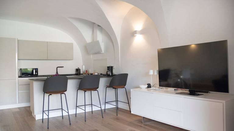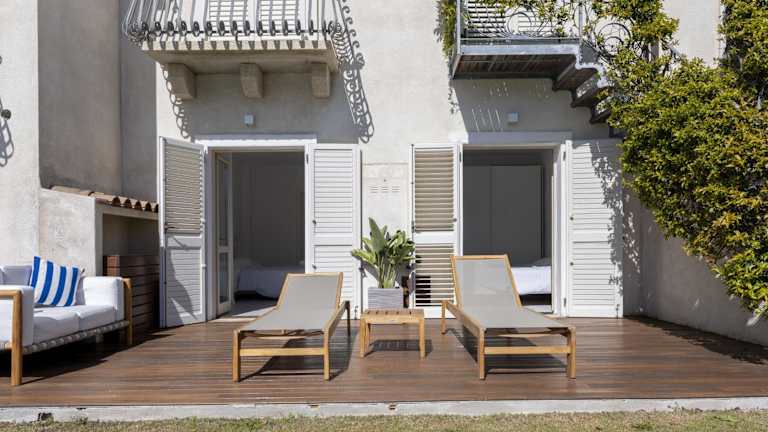 Die Zimmer verfügen über eine Terrasse mit Poolblick, einen Sitzbereich, einen Flachbild-TV und eine voll ausgestattete Küche mit Kühlschrank und Geschirrspüler. Jedes Zimmer hat ein eigenes Bad mit Bidet, kostenlosen Pflegeprodukten, Dusche und Haartrockner.