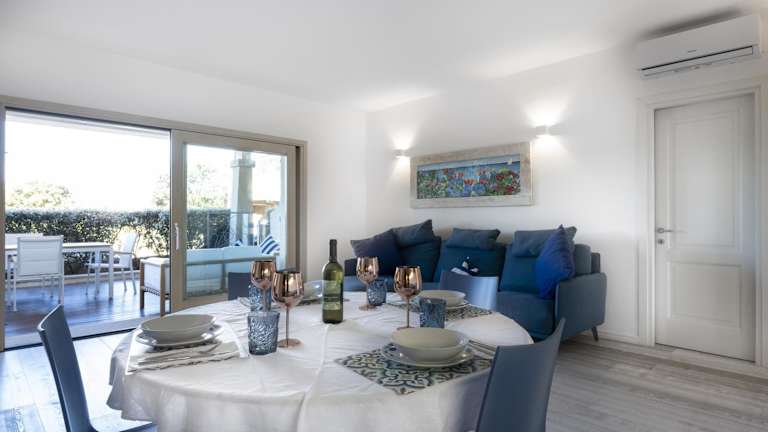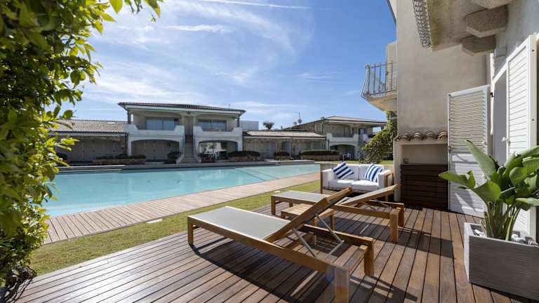 Sardinia Gold Luxury Apartment bietet Übernachtungsmöglichkeiten in einem modernen Umfeld, ausgestattet mit kostenlosem WLAN und Klimaanlage. Die Unterkunft ermöglicht den Zugang zu einem Garten mit Außenpool und einem Whirlpool.