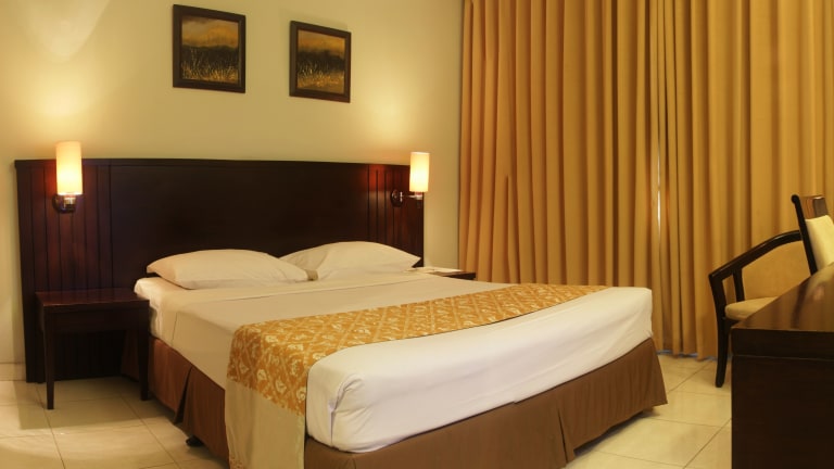 Die klimatisierten Zimmer im Sari Ater Hotel & Resort sind modern im indonesischen Stil eingerichtet. Sie verfügen über dunkle Holzmöbel und Stoffe der Region. Zur Ausstattung gehören Sat-TV, eine Minibar und eine Versorgung mit natürlichem Quellwasser. Genießen Sie den Komfort und die Gemütlichkeit dieser Zimmer.