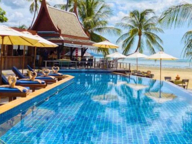 Das Sasitara Thai Villas ist eine ideale Wahl für einen entspannten Urlaub in Strandnähe. Mit einem Restaurant, einem Außenpool und einer schönen Gartenanlage bietet die Villa alles, was Sie für einen angenehmen Aufenthalt benötigen. Die klimatisierten Wohneinheiten sind modern ausgestattet und verfügen über ein eigenes Bad, einen Flachbild-TV und einen Kühlschrank. Das Frühstück wird jeden Morgen mit einer Vielzahl von Optionen angeboten, darunter amerikanische, asiatische und vegetarische Gerichte. Darüber hinaus bietet das Hotel einen Mietwagenservice und Aktivitäten wie Kanufahren in der Nähe. Der Strand Choeng Mon und ein FKK-Strand sind nur wenige Kilometer entfernt, und der Flughafen Samui International ist ebenfalls gut erreichbar.