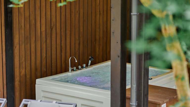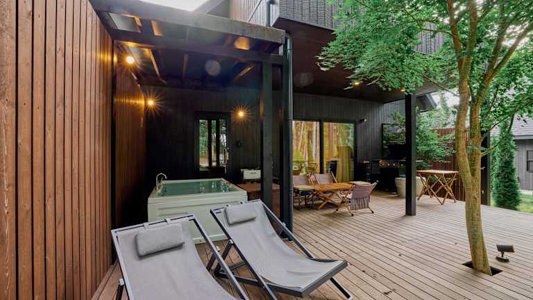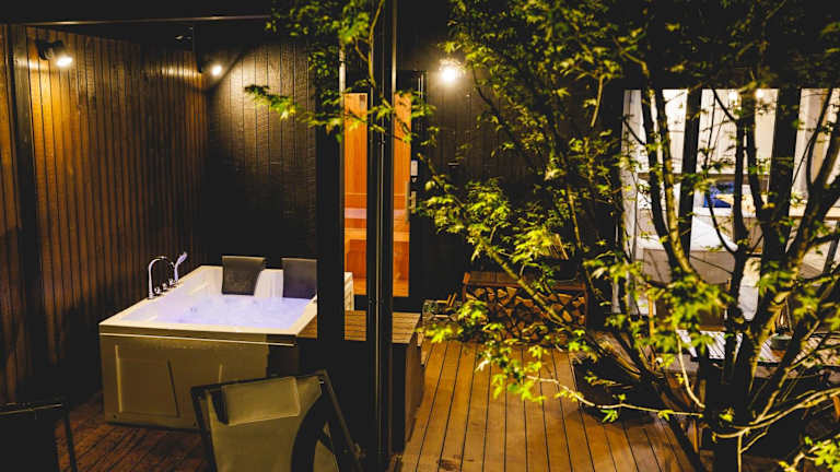 SAUNA FOREST CABIN 軽井沢 御代田 A棟 zen-asobi bietet eine Unterkunft mit Gartenblick, Gartenbereich und Balkon. Die Villa besteht aus drei Schlafzimmern, einem Wohnzimmer sowie einer voll ausgestatteten Küche. Die Ausstattung umfasst zudem eine Sauna und einen Whirlpool.