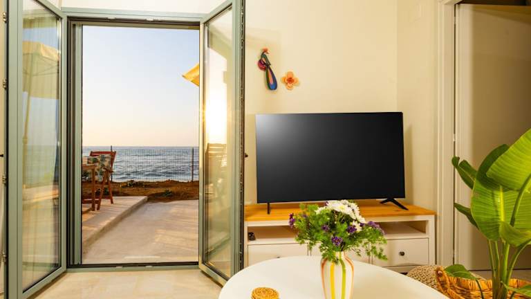 Savina Seafront Home ist eine klimatisierte Unterkunft mit zwei Schlafzimmern, einer voll ausgestatteten Küche sowie einem Wohnbereich, der mit einem Flachbild-TV ausgestattet ist. Zu den Annehmlichkeiten gehören eine Terrasse und eine Veranda sowie ein Whirlpool.