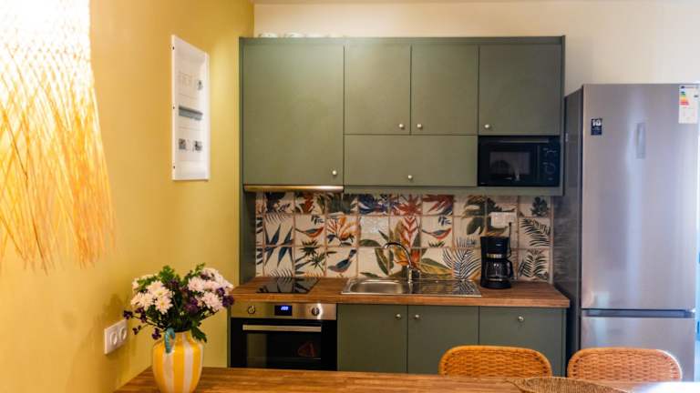 Die Unterkunft verfügt über 2 Schlafzimmer, ein Badezimmer mit Dusche, eine Küche mit Kühlschrank und Geschirrspüler sowie einen Sitzbereich. Bettwäsche und Handtücher werden bereitgestellt. Schallisolierte Zimmer, Heizung und Klimaanlage sind ebenfalls vorhanden.