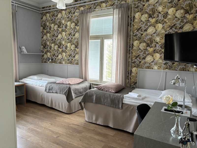 Die Zimmer im Savonlinnan Kansanopisto - Wanha Pappila sind individuell eingerichtet und bieten eine helle und geräumige Atmosphäre. Jedes Zimmer verfügt über ein eigenes Badezimmer und einen Blick auf den Garten.