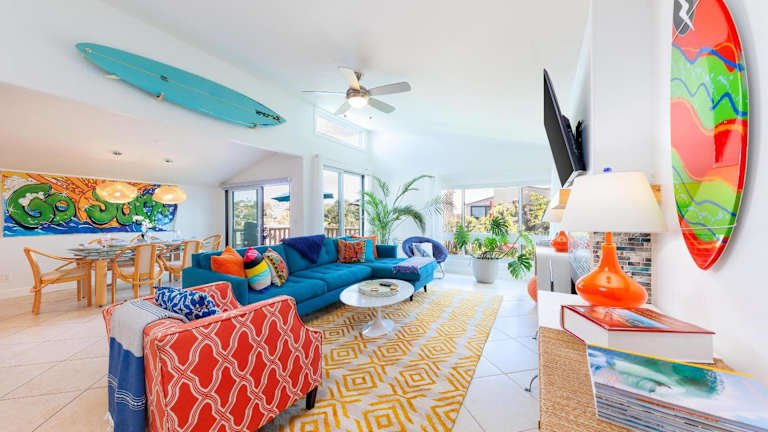 SB-503 - Cali Surfer Lounge ist ein Ferienhaus, das mit einem Balkon ausgestattet ist und die Gäste mit einer gehobenen Ausstattung empfängt. Die Unterkunft bietet ein komfortables Ambiente.