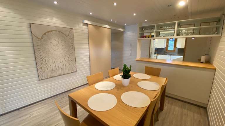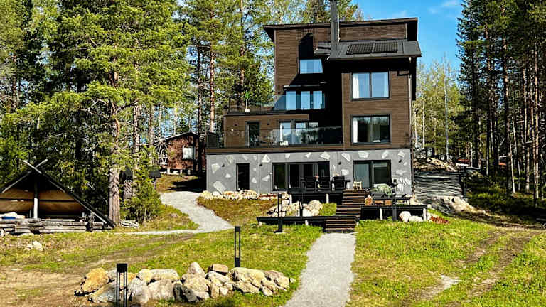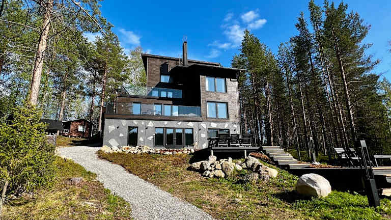 Scandi House Levi bietet seinen Gästen kostenloses WLAN, Grillmöglichkeiten und einen Garten. Zur Ausstattung gehört zudem ein eigener Strandbereich und eine Terrasse mit Bergblick. Die Unterkunft ist klimatisiert und beinhaltet einen Whirlpool. Außerdem wird eine Sauna zur Verfügung gestellt.