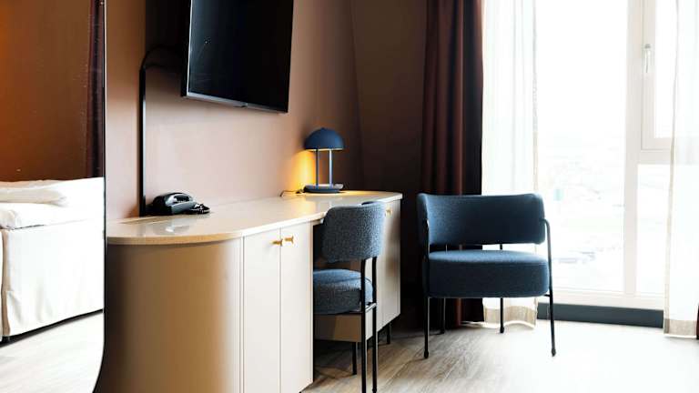 Das Scandic Nidelven Hotel bietet 343 moderne Nichtraucherzimmer auf 6 Etagen. Die Zimmer verfügen über eine zentral gesteuerte Klimaanlage, einen Kühlschrank und einige Zimmer bieten einen schönen Blick auf den Fluss Nidelven. Holzböden und Tee- und Kaffeezubehör sorgen für zusätzlichen Komfort. In den Badezimmern stehen Ihnen Kosmetikartikel und ein Haartrockner zur Verfügung.