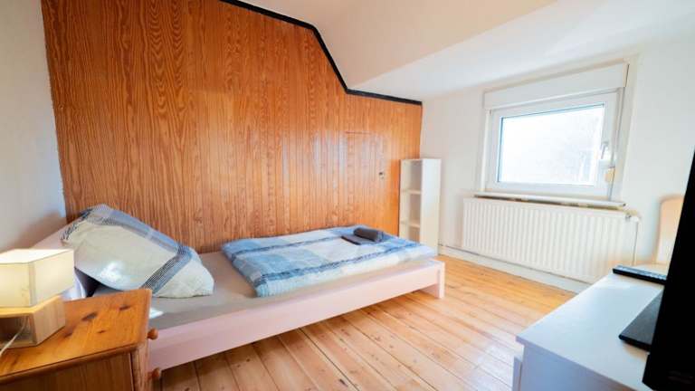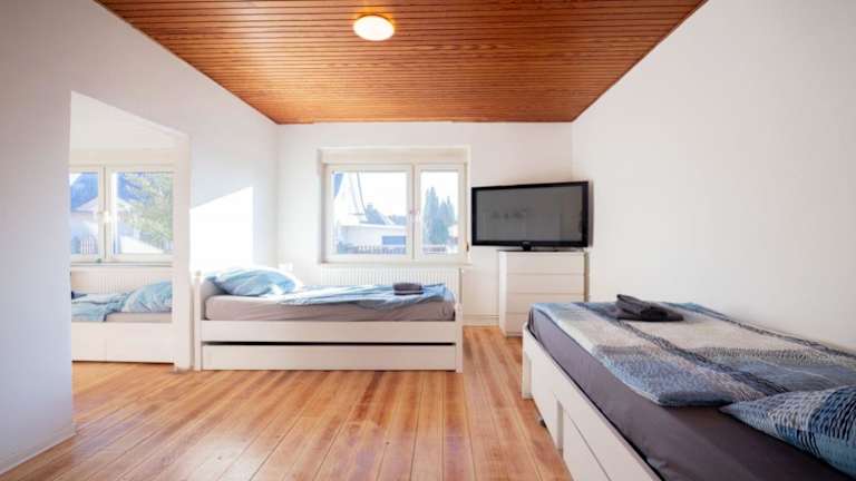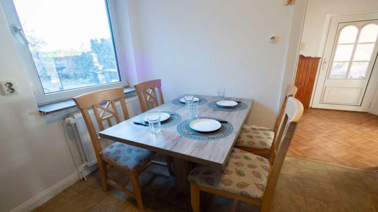 Die Ferienwohnung verfügt über 6 Schlafzimmer und 1 Badezimmer. Zur Ausstattung gehören Bettwäsche und Handtücher, ein Flachbild-TV sowie ein Essbereich. Eine voll ausgestattete Küche steht den Gästen zur Verfügung, was die Möglichkeit zur eigenen Verpflegung bietet.
