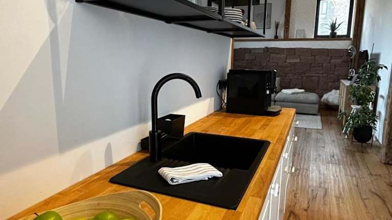 Die Ferienwohnung besteht aus einem Schlafzimmer, einem Wohnzimmer und einer voll ausgestatteten Küchenzeile, die über einen Kühlschrank und eine Kaffeemaschine verfügt. Ein Badezimmer mit Dusche und Haartrockner ist ebenfalls vorhanden. Zur Ausstattung gehören Handtücher und Bettwäsche. Die Unterkunft bietet kostenfreies WLAN und einen Privatparkplatz.