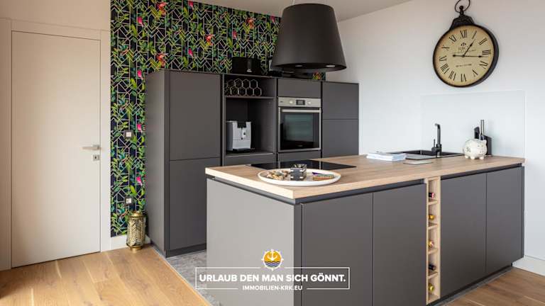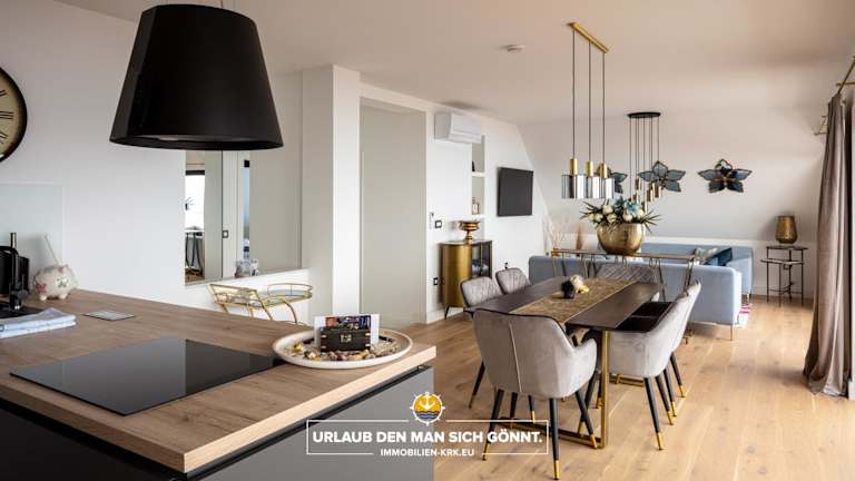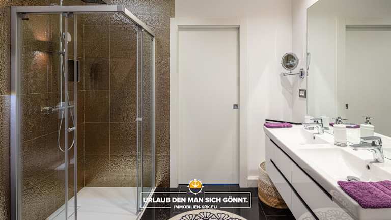 Die Ferienwohnung bietet zwei Schlafzimmer, ein Wohnzimmer und eine voll ausgestattete Küche mit Kühlschrank und Kaffeemaschine. Zu den zwei Badezimmern gehören eine Badewanne oder Dusche sowie ein Haartrockner. Des Weiteren sind Handtücher und Bettwäsche vorhanden.