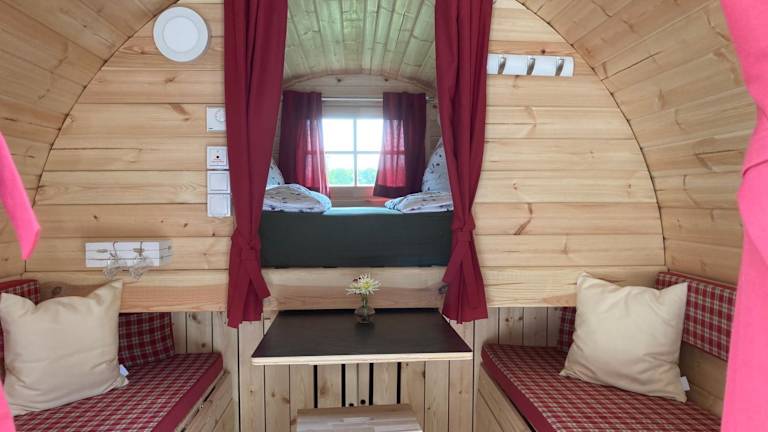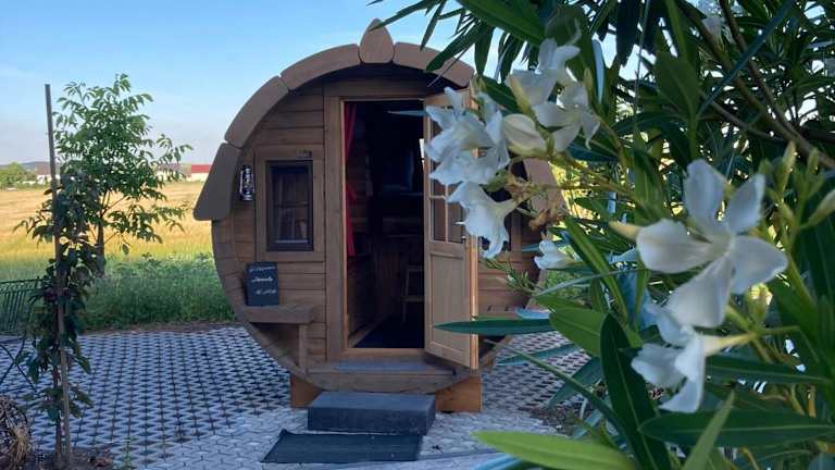 Die Unterkunft bietet gemütliche Schlaffässer mit einem Gemeinschaftsbad. Die Schlaffässer sind voll ausgestattet und bieten einen komfortablen Aufenthalt. Im Gemeinschaftsbad finden Sie eine Dusche und einen Haartrockner. Genießen Sie die einmalige Erfahrung, in einem Schlaffass zu übernachten und die Natur um sich herum zu erleben.