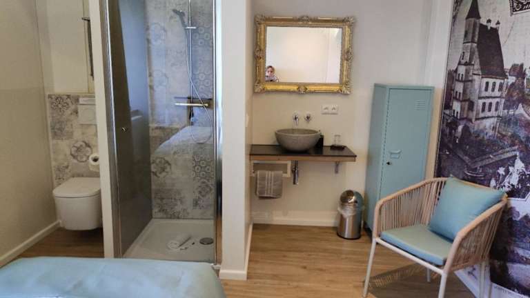 Jedes Zimmer in der Unterkunft Schloss Kalteneck ist mit einem Schreibtisch, einem TV, einem eigenen Badezimmer, Bettwäsche, Handtüchern und einem Kleiderschrank ausgestattet.