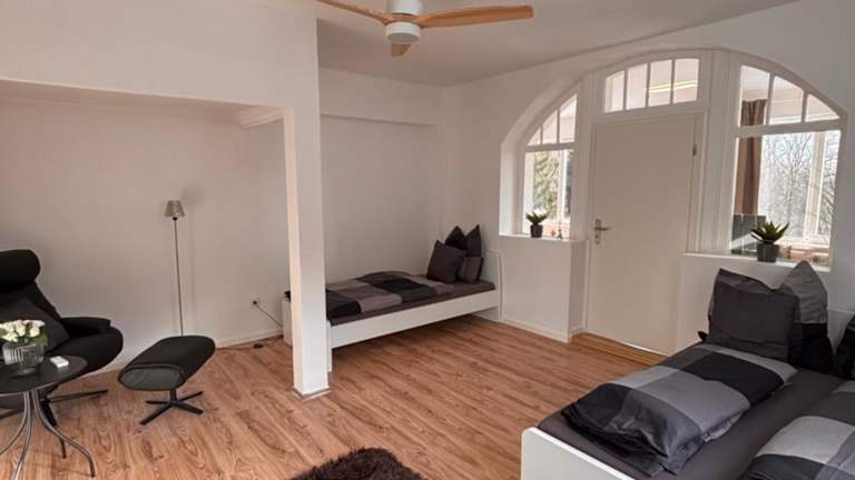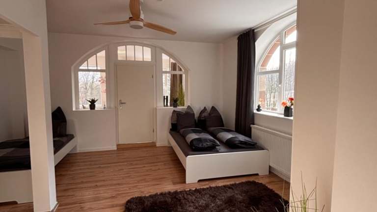 Schloss Södderich Apartment 6 bietet eine komfortable Ferienwohnung mit zwei Schlafzimmern, einem Wohnzimmer und einer Terrasse mit Gartenblick. Die Gemeinschaftslounge und der kostenlose Privatparkplatz sind ebenfalls Teil der Unterkunft. Weitere Annehmlichkeiten umfassen eine schallisolierte Umgebung und einen Nichtraucherbereich. Die Unterkunft ist besonders für Familien geeignet, da Familienzimmer zur Verfügung stehen. Der Check-in ist von 15:00 bis 00:00 Uhr möglich, während der Check-out bis 11:00 Uhr erfolgen muss. Junggesellenabschiede und ähnliche Feiern sind nicht gestattet.