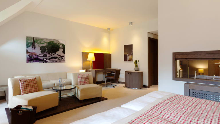 Die 114 Zimmer und 36 Suiten sind auf vier zusammenhängende Gebäude verteilt und vereinen die Optik eines historischen Schlosses mit modernen Elementen. So sind die 28 bis 120 m² großen Zimmer und Suiten ebenfalls durch den Tiroler Stil geprägt, aber zugleich modern, komfortabel und in freundlichen, warmen Farbtönen eingerichtet.