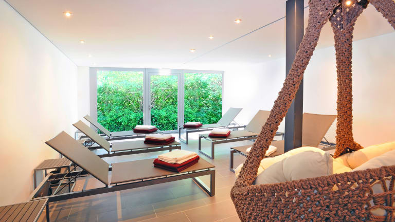 Neuer Wellnessbereich mit finnischer Sauna, Dampfbad, Erlebnisdusche, Ruhelounge und Terrasse. Ebenfalls neu gestalteter Fitnessraum mit Kraft- und Cardiogeräten sowie Terrasse. 18-Loch-Golfplatz, Reitanlage, Joggingwege, Bootsverleih, Minigolfplatz, Weingut auf dem Parkgelände.