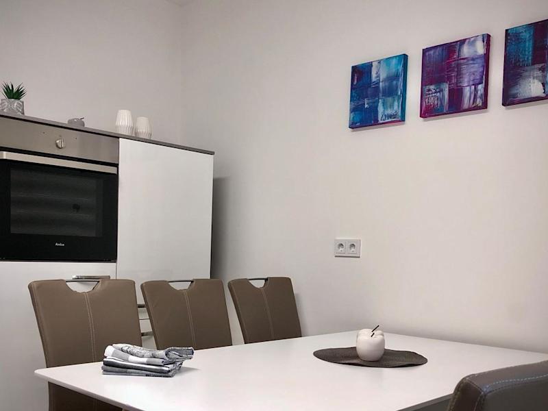 Die Ferienwohnung verfügt über zwei Schlafzimmer, ein Wohnzimmer sowie eine voll ausgestattete Küche mit Kühlschrank und Kaffeemaschine. Es gibt ein Badezimmer mit Dusche und Badewanne. Handtücher und Bettwäsche werden zur Verfügung gestellt.