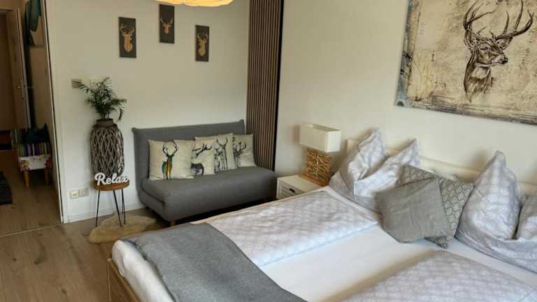 Die Ferienwohnung umfasst ein Schlafzimmer und ein Wohnzimmer, sowie eine gut ausgestattete Küche mit Kühlschrank und Geschirrspüler. Zur weiteren Ausstattung gehört ein Flachbild-TV und ein Badezimmer mit Dusche.