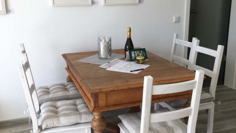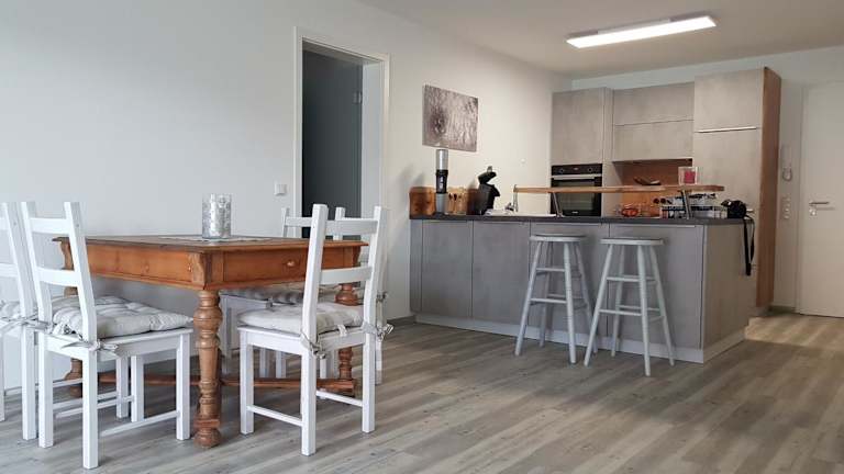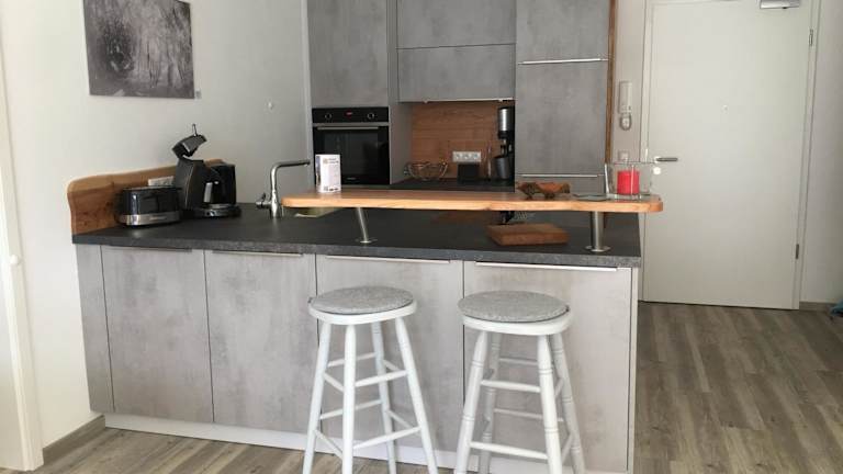 Die Ferienwohnung verfügt über ein Schlafzimmer, ein Wohnzimmer mit Flachbild-TV, eine gut ausgestattete Küche mit Kühlschrank und Geschirrspüler sowie ein Badezimmer mit Dusche. Ein Balkon mit Bergblick ist ebenfalls vorhanden. Handtücher und Bettwäsche werden bereitgestellt.