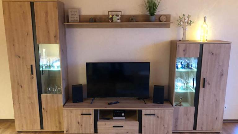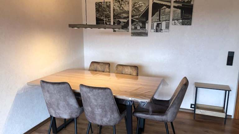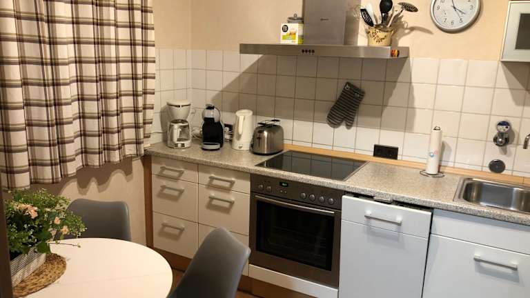 Die Ferienwohnung umfasst 1 Schlafzimmer, ein Wohnzimmer mit Flachbild-TV, eine gut ausgestattete Küche mit Kühlschrank und Geschirrspüler sowie ein Badezimmer mit Dusche. Ein Balkon mit Bergblick ist ebenfalls vorhanden. Handtücher und Bettwäsche werden bereitgestellt.