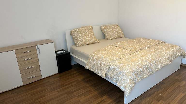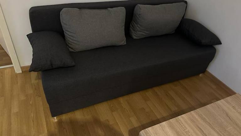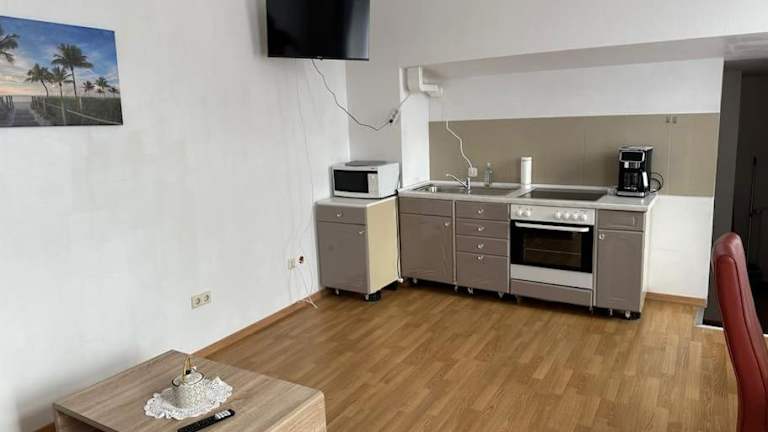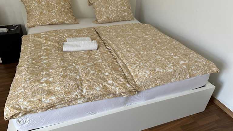 Die Ferienwohnung besteht aus einem Schlafzimmer und einem Wohnzimmer. Handtücher und Bettwäsche werden bereitgestellt.