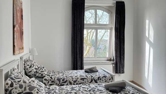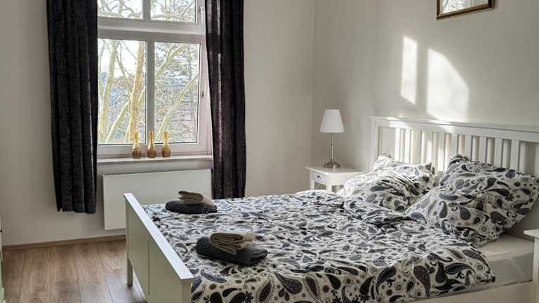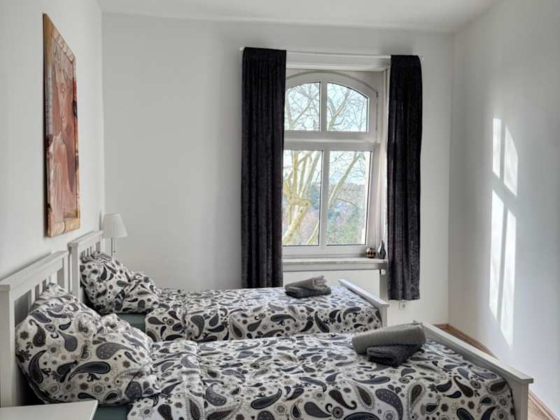 Die Schöne 3-Zimmer Wohnung bietet Platz für bis zu 4 Gäste und verfügt über 2 Schlafzimmer. Das Apartment ist modern eingerichtet und bietet einen großzügigen Wohnbereich mit Flachbild-Kabel-TV. Die voll ausgestattete Küche umfasst einen Kühlschrank, einen Geschirrspüler, eine Waschmaschine, einen Backofen und eine Mikrowelle. Handtücher und Bettwäsche werden gestellt, um Ihnen einen angenehmen Aufenthalt zu ermöglichen.