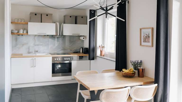 Die Ferienwohnung umfasst zwei Schlafzimmer und ist mit einer voll ausgestatteten Küche versehen, die einen Kühlschrank und einen Geschirrspüler beinhaltet. Es gibt ein Badezimmer mit einer Dusche und kostenlosen Pflegeprodukten. Handtücher und Bettwäsche werden bereitgestellt.