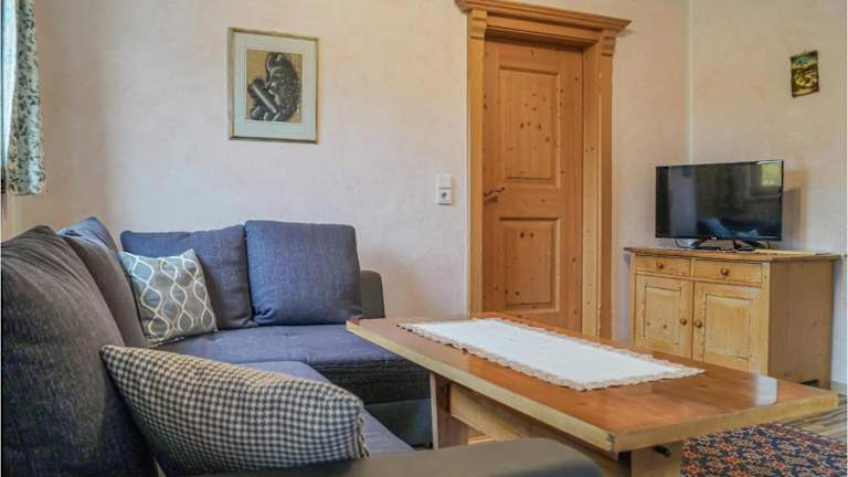 Die Ferienwohnung besteht aus zwei Schlafzimmern, einem Wohnzimmer sowie einer voll ausgestatteten Küchenzeile, die mit einem Kühlschrank und einer Kaffeemaschine ausgestattet ist. Es gibt ein Badezimmer, das über eine Dusche und eine Badewanne verfügt.