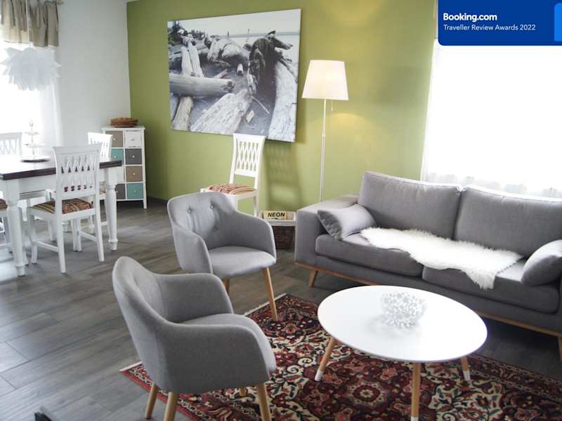 Die Unterkunft bietet eine große Ferienwohnung mit einem Balkon und einer Sonnenterrasse. Gäste haben Zugang zu kostenlosen Fahrrädern, kostenlosem WLAN und einer Gemeinschaftsküche. Die Ferienwohnung wird von einem privaten Gastgeber geführt und bietet Nichtraucherzimmer sowie ein gemeinschaftliches Lounge- und TV-Bereich.