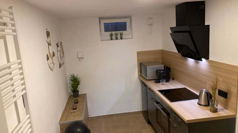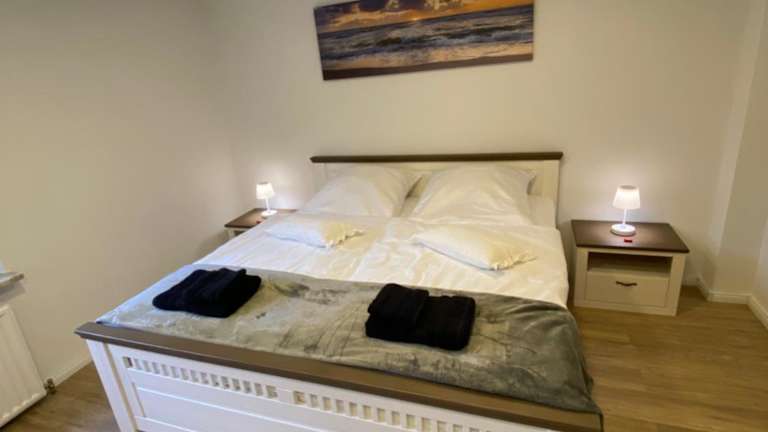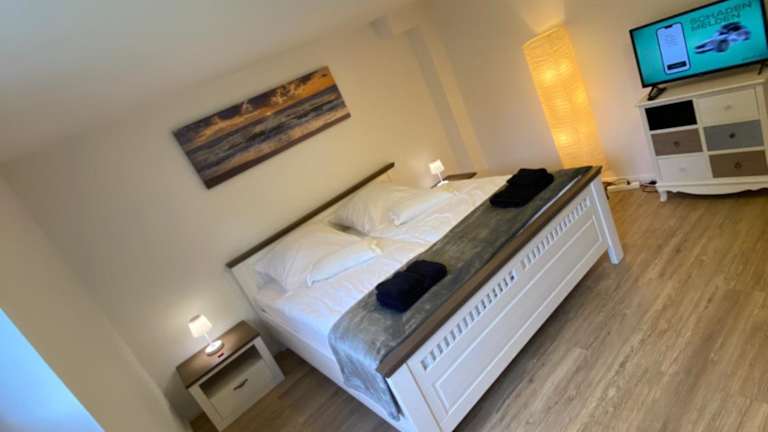 Die Ferienwohnung verfügt über 1 Schlafzimmer, eine Küche mit Kühlschrank und Geschirrspüler, einen Flachbild-TV, einen Sitzbereich sowie ein Badezimmer mit Dusche. Handtücher und Bettwäsche werden bereitgestellt.