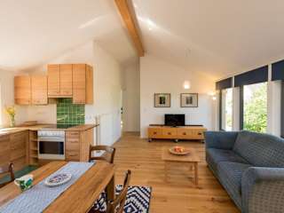 Die Ferienwohnung beinhaltet ein Schlafzimmer sowie eine Küche, die mit einem Kühlschrank und Geschirrspüler ausgestattet ist. Zudem gibt es einen Flachbild-TV, einen Sitzbereich und ein Badezimmer mit Dusche. Handtücher und Bettwäsche werden bereitgestellt.