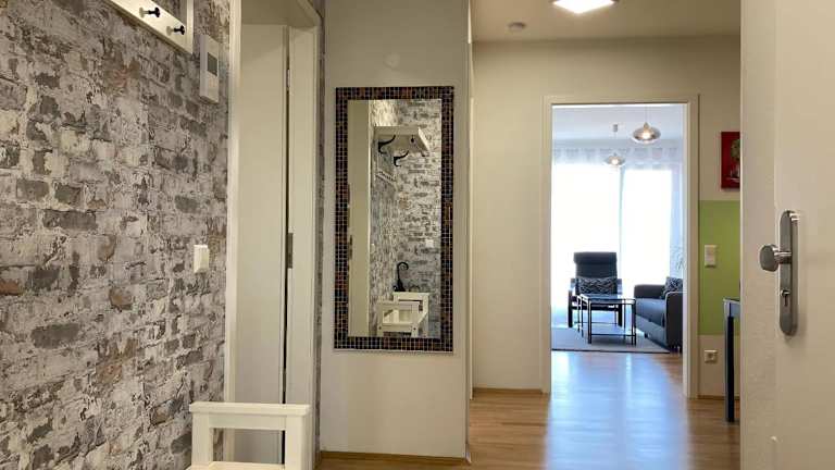 Die Ferienwohnung comprises ein Schlafzimmer und ein Wohnzimmer. Die Ausstattung beinhaltet einen Flachbild-TV sowie eine gut ausgestattete Küche mit Kühlschrank und Ofen. Das Badezimmer bietet eine Dusche. Handtücher und Bettwäsche werden bereitgestellt.