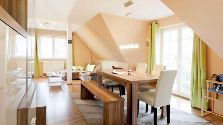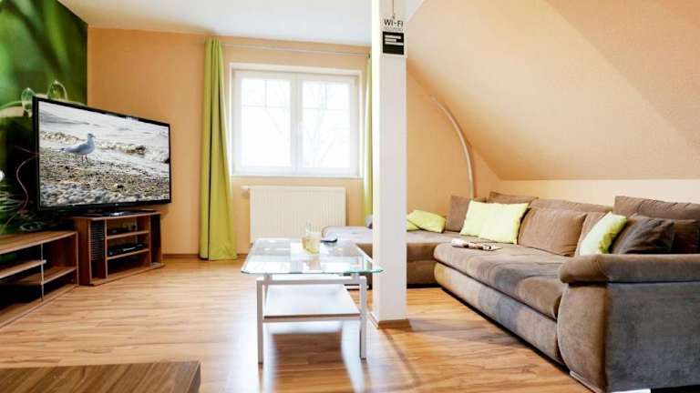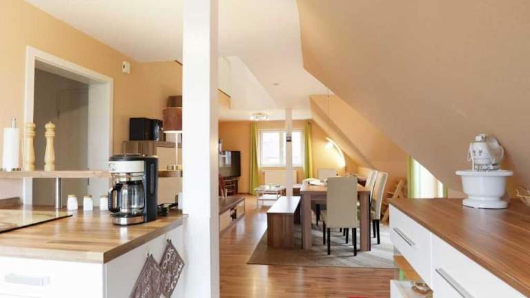Die Ferienwohnung Schwannest 2 bietet Platz in drei Schlafzimmern. Zur Ausstattung gehört ein Flachbild-TV sowie eine gut ausgestattete Küchenzeile, die einen Kühlschrank und einen Geschirrspüler umfasst. Zudem gibt es ein Badezimmer mit einer Dusche.