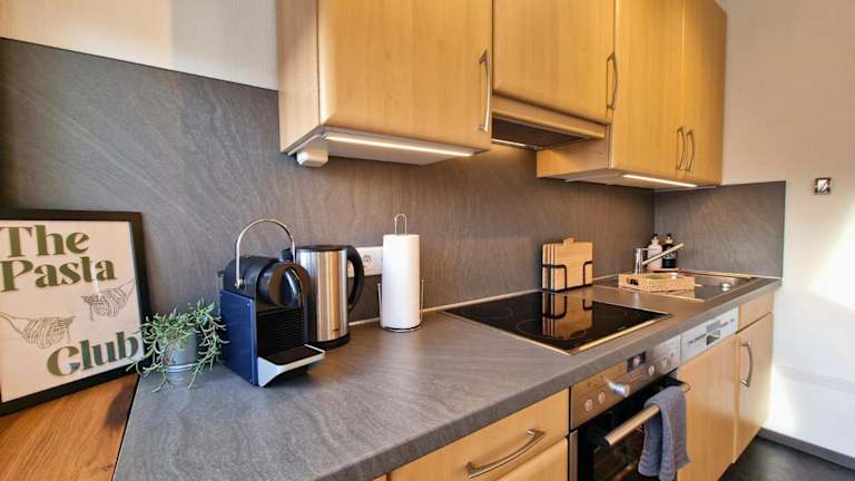 Die Ferienwohnung verfügt über ein Schlafzimmer, ein Wohnzimmer mit Flachbild-TV und eine gut ausgestattete Küche mit Kühlschrank und Geschirrspüler. Zudem gibt es ein Badezimmer mit Dusche und einen Balkon mit Bergblick. Die Räume sind schallisoliert und es wird eine Nichtraucherunterkunft angeboten.