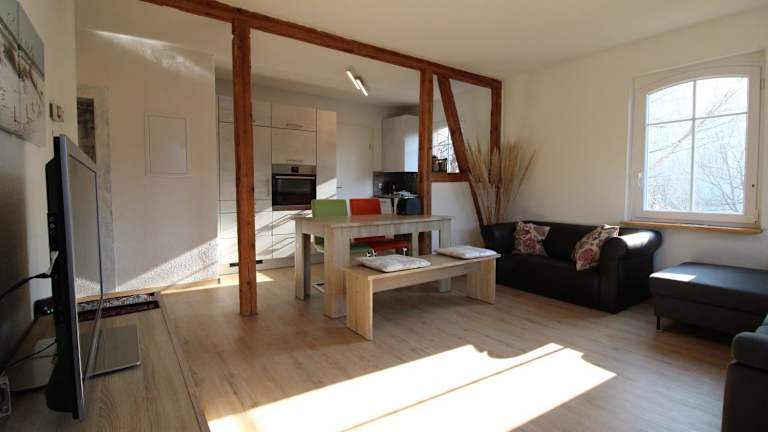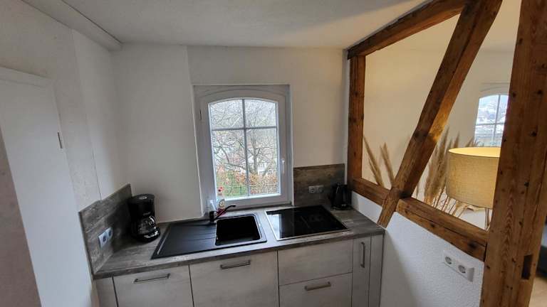 Die Ferienwohnung verfügt über 1 Schlafzimmer, ein Wohnzimmer und eine voll ausgestattete Küchenzeile mit Kühlschrank und Kaffeemaschine. Zudem gibt es 1 Badezimmer mit Dusche. Handtücher und Bettwäsche werden bereitgestellt.
