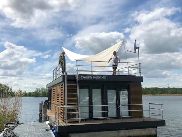 Erleben Sie einen einzigartigen Urlaub auf der schwimmenden Ferienwohnung, einem Hausboot am Steg mit Flussblick. Genießen Sie die Terrasse, das Restaurant und die Wassersportmöglichkeiten in der malerischen Umgebung, nur 35 km von der Gedenkstätte und dem Museum Sachsenhausen entfernt. Das klimatisierte Ferienhaus bietet zwei Schlafzimmer, ein Wohnzimmer, eine voll ausgestattete Küchenzeile und zwei Badezimmer. Handtücher und Bettwäsche sind vorhanden. Für Kinder gibt es einen Spielplatz. Entdecken Sie die Schönheit von Schloss Tornow, nur 12 km entfernt, oder besuchen Sie das Kulturhaus Stadtgarten, das 50 km entfernt liegt. Der Flughafen Berlin Brandenburg Willy Brandt ist etwa 120 km entfernt.