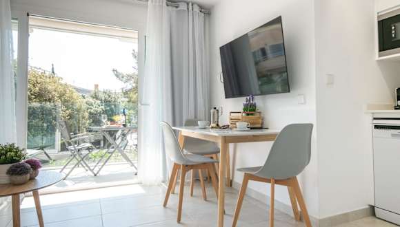 Die Ferienwohnung verfügt über 1 Schlafzimmer, ein Wohnzimmer, eine voll ausgestattete Küche mit Kühlschrank und Kaffeemaschine sowie ein Badezimmer mit Dusche und Haartrockner. Handtücher und Bettwäsche sind in der Wohnung vorhanden. Die Unterkunft ist klimatisiert.